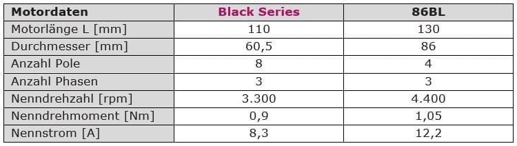 Im Vergleich zu anderen 48 V BLDC-Motoren liefert unser Neuer eine sehr starke Leistung auf kleinstem Bauraum. Mit einem Frame von gerade mal 60,5 mm und einer Länge von 110 mm ist er wesentlich kompakter als unsere 86BL Motoren und hält leistungsmäßig problemlos mit.